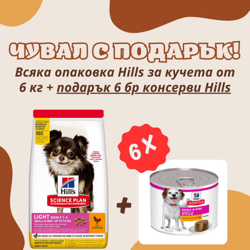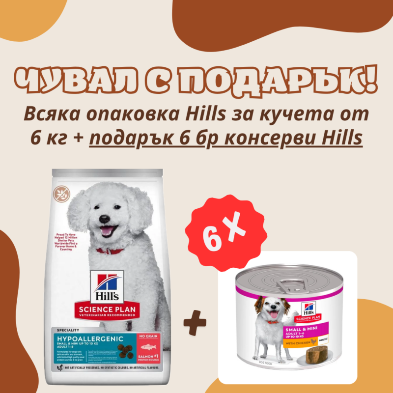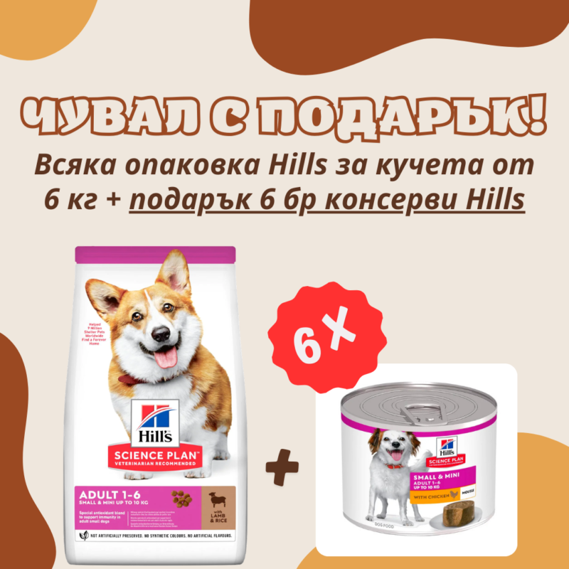 Всяко чувалче на Hills от 5 кг и всяко чувалче на N&D от 6 кг идва с подарък шест консерви мус