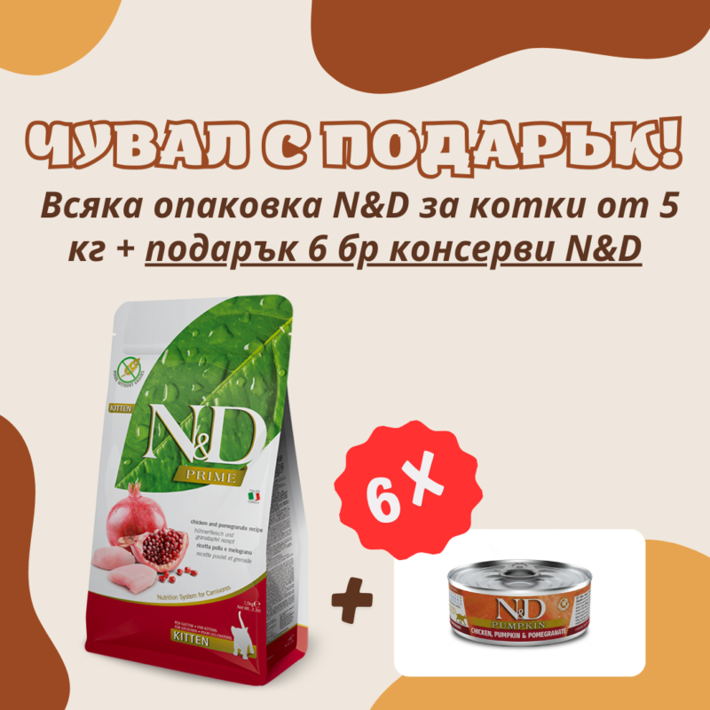 €6.14 / 12.01 лв.N&D Kitten Prime Chicken and Pomegranate храна за подрастващи котки с пиле и нар