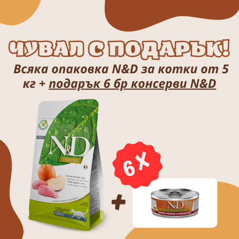 €6.14 / 12.01 лв.N&D Cat Prime Wild Boar And Apple Adult храна за котки с глиганско и ябълка