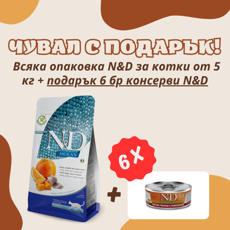 €6.65 / 13.01 лв.N&D Ocean Cat Pumpkin Herring Adult храна за котки херинга, тиква и портокал