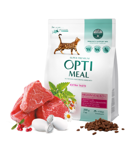 Opti Meal Adult Cat Veal храна за котки с високо съдържание на телешко различни разфасовки