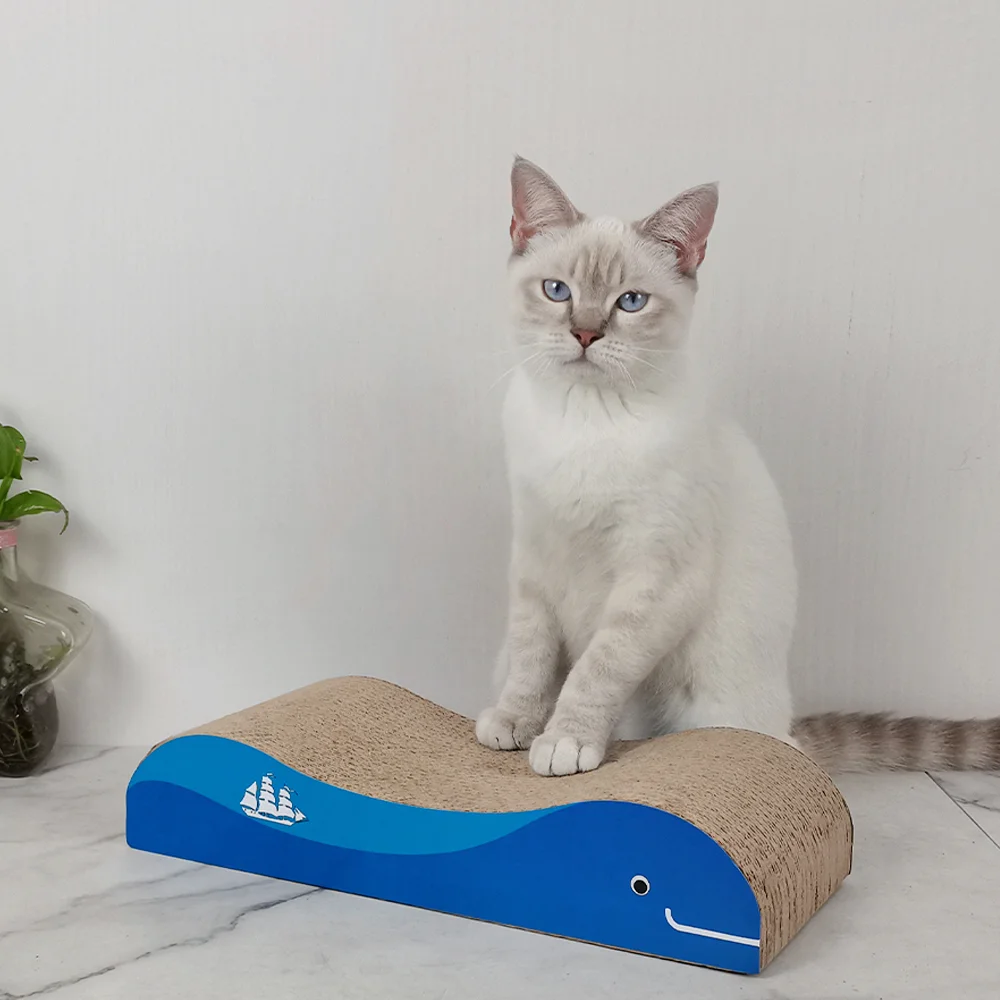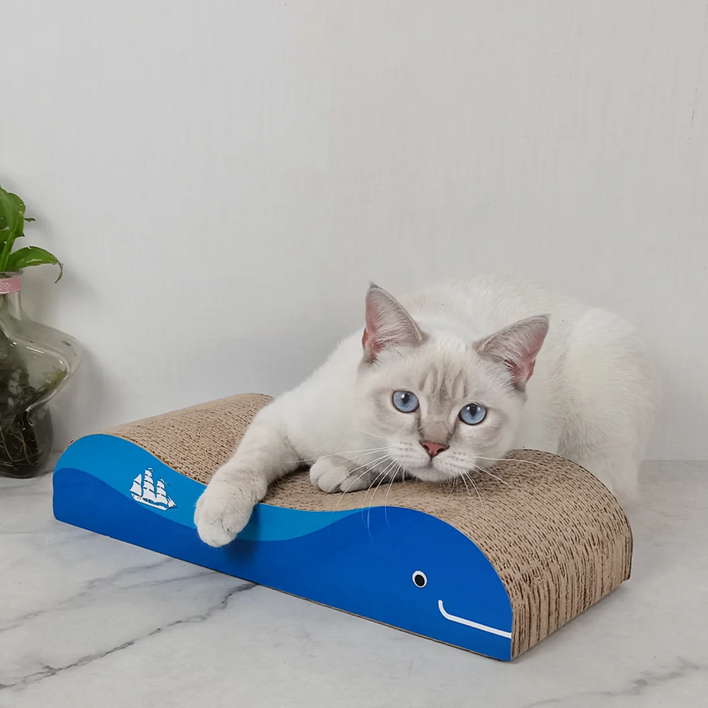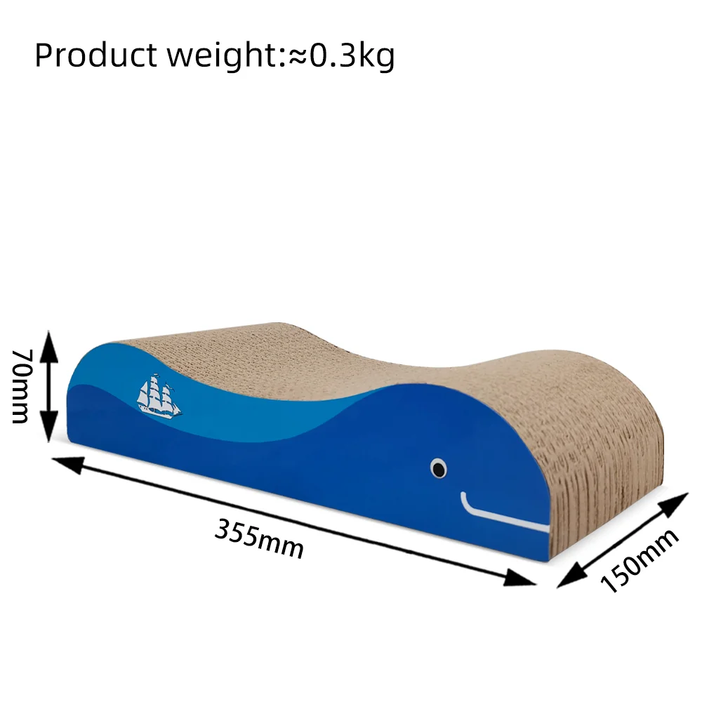 Изработена от 100% екологично велпапе. С интересен дизайн на риба. Удобна, издръжлива, безопасна. Включено пакетче котешка трева за насърчаване на употребата. Идеалното място за задоволяване на естествените инстинкти на котката. За блажено разтягане, облекчаващо стреса драскане и точене на ноктите.