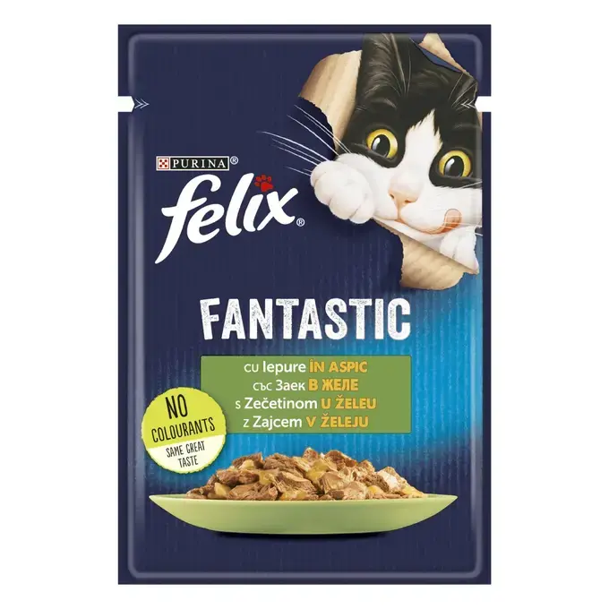FELIX Fantastic е асортимент от вкусни ястия, специално приготвени с крехки месни парченца в сочно желе, което изглежда и мирише толкова добре, колкото храната, която Вие бихте приготвили за себе си. Всяка рецепта е източник на незаменими Омега 6 мастни киселини и съдържа правилната комбинация от минерали и витамини, за да задоволи 100% от дневните нужди на Вашата котка.