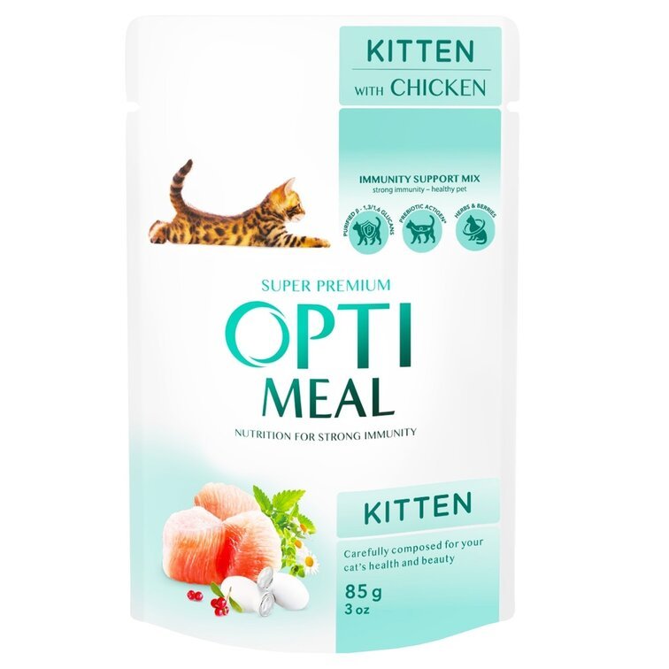 Opti Meal Kitten Chicken пауч за подрасващи котки с пиле в сос 85 гр.