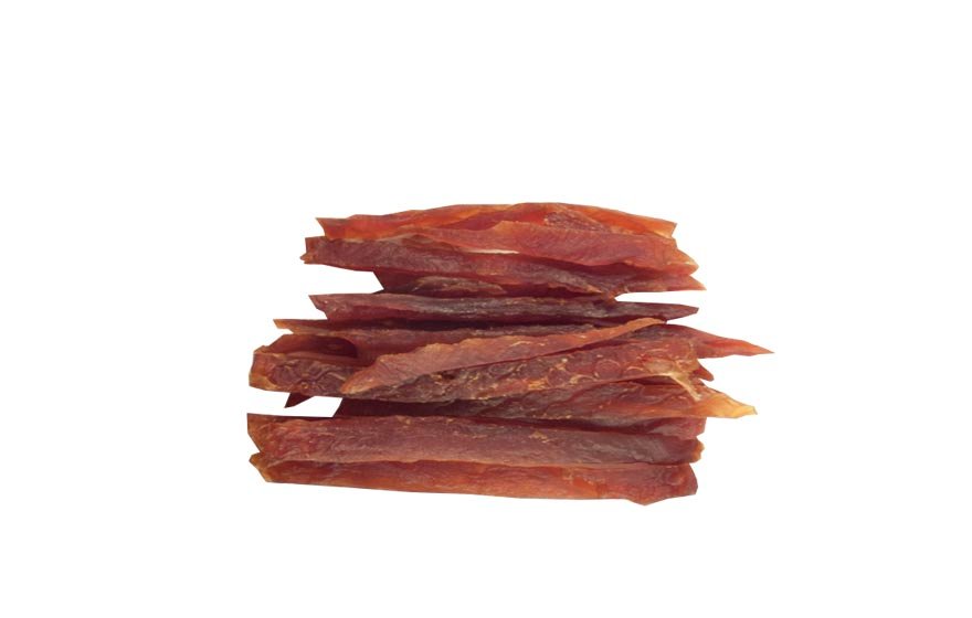 Хапки с леко подсушено патешко филе. Загряват се във фурна при температура 90 градуса за щадящото им дехидратиране .