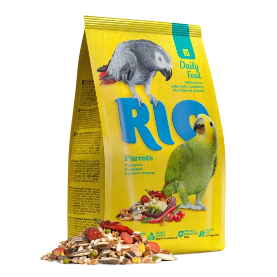 Инструкции за хранене: дневната норма на RIO храна за големи папагали е 40-50 грама.