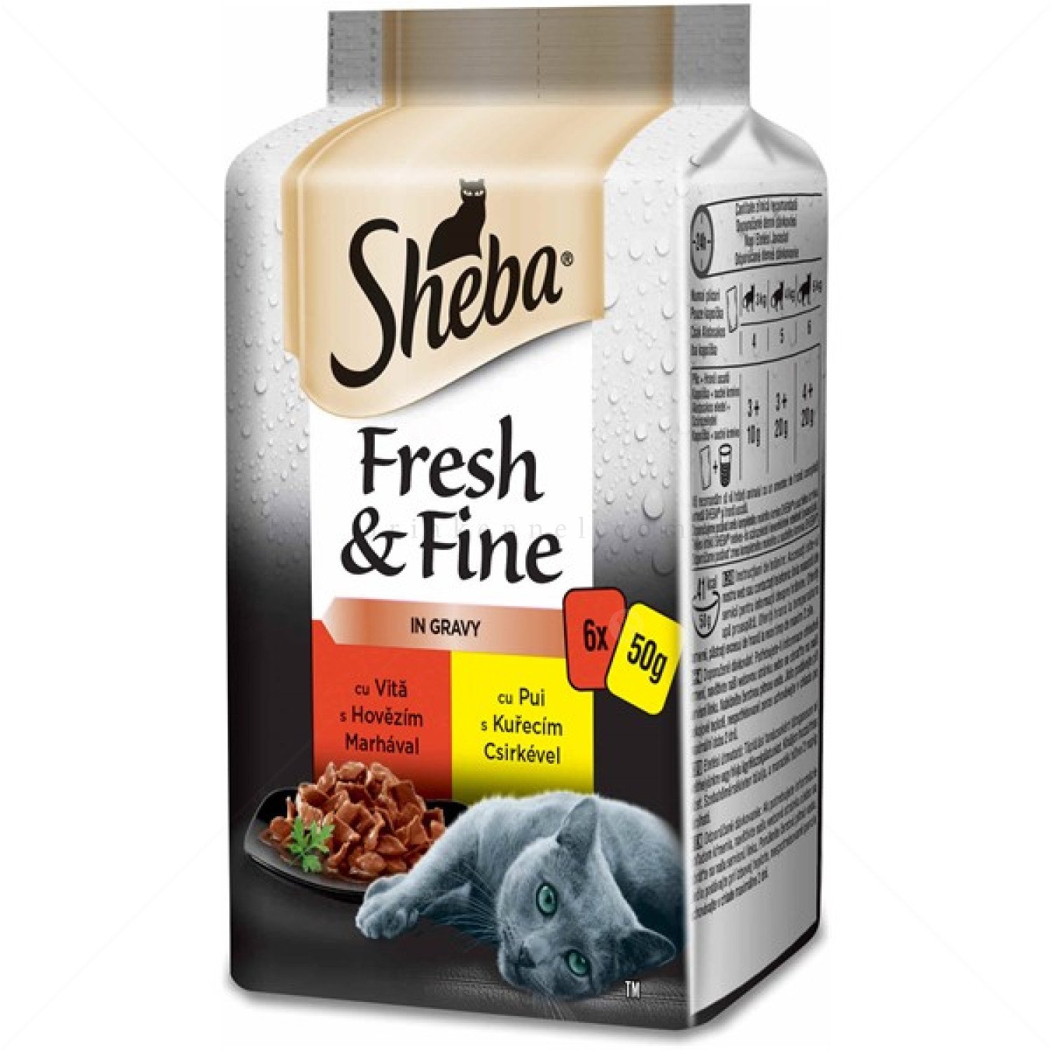 Sheba знае, че всяка котка е уникална и заслужава храна, която е точно толкова необикновена, колкото и тя самата. Затова „Sheba Fresh & Fine“ разкрива нови кулинарни светове за вашия пораснал четирикрак ценител на добрата храна. Малки, фино нарязани късчета риба или месо в изкусителен сос, приготвени с висококачествени съставки доставят едно безкрайно вкусово удоволствие. Практичната опаковка-пауч представлява идеална порция за едно хранене давайки възможност за абсолютна наслада без неизядени остатъци – така фините хапчици ще бъдат винаги пресни и свежи за вашата котка! А при огромното разнообразие от изискани композиции скуката никога няма да припари до купата на вашата котка.