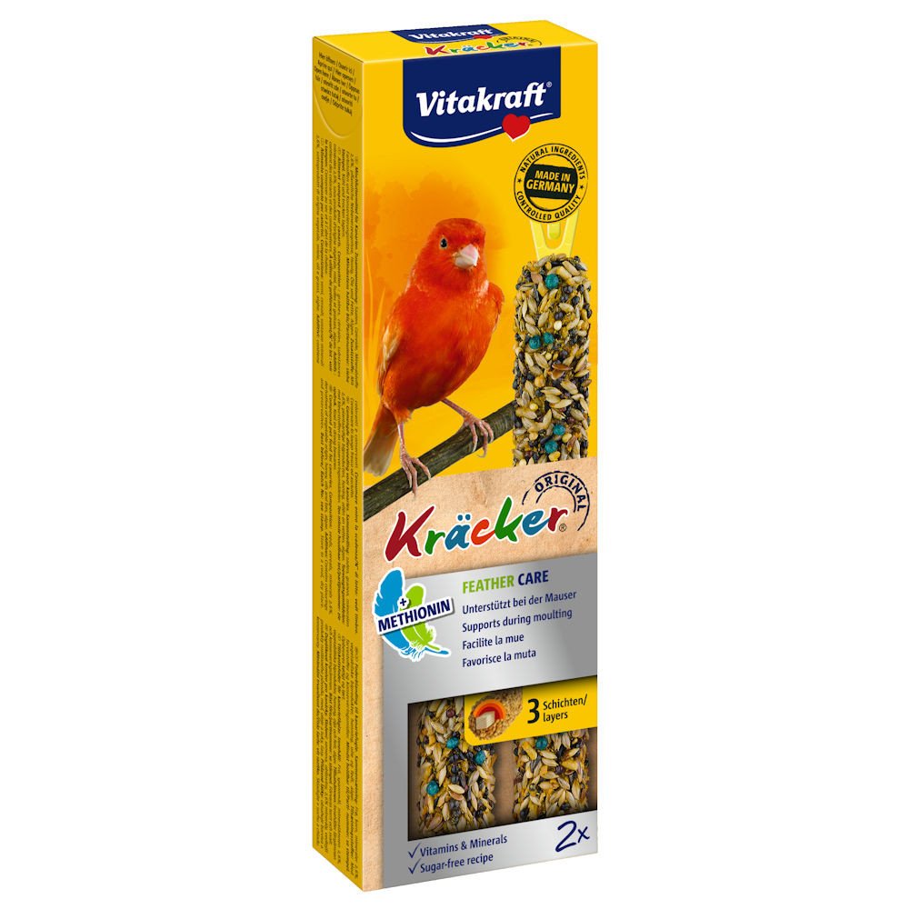 Крекерите на Vitakraft® (Kräcker® e запазена марка на Vitakraft®) са едновременно истински вкусни и много занимателни, подтиквайки канарчетата сами да заработват храната си чрез присъщи за тях дейности. Три вкусни, изпечени върху естествено дърво слоя предлагат изключително дълго удоволствие, докато птицата кълве и добива храната си, и подпомагащи грижата за човката.