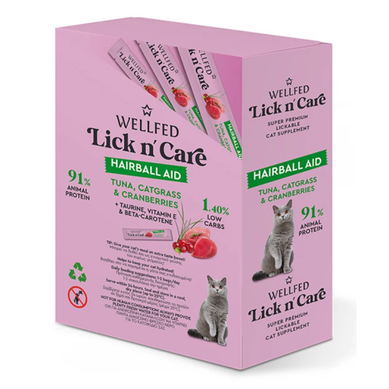 Wellfed Lick N’ Care Hairball Aid Кремообразно лакомство за котки 24 бр х 15 гр
